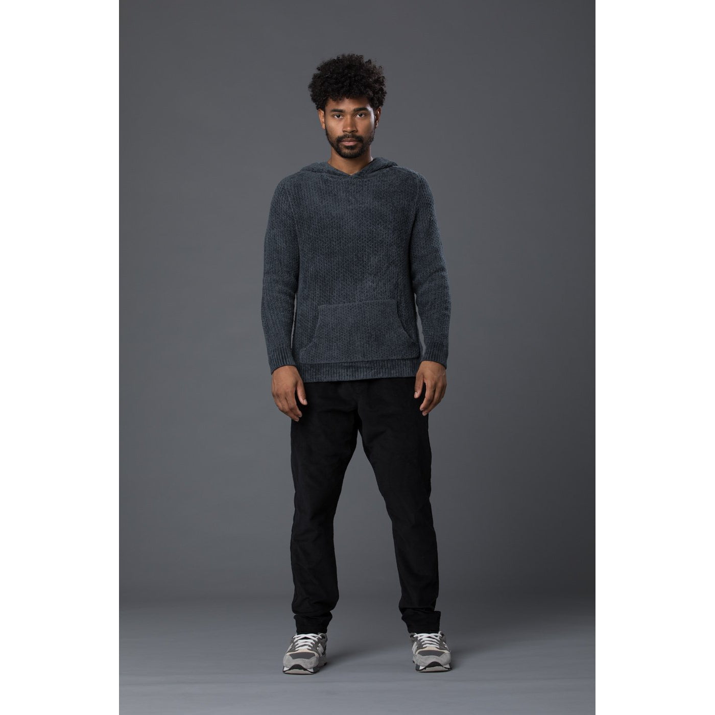 DEVEAUX NEW YORK continues to define American Luxury in menswear with their Fall collection. Their Chenille Hoodie is a strong style statement from the designer brand. Crafted with Italian chenille yarns, the sweater is in a rich slate blue for a modern update to the new classics. Worn with the ADAM MAR Peace Pant.