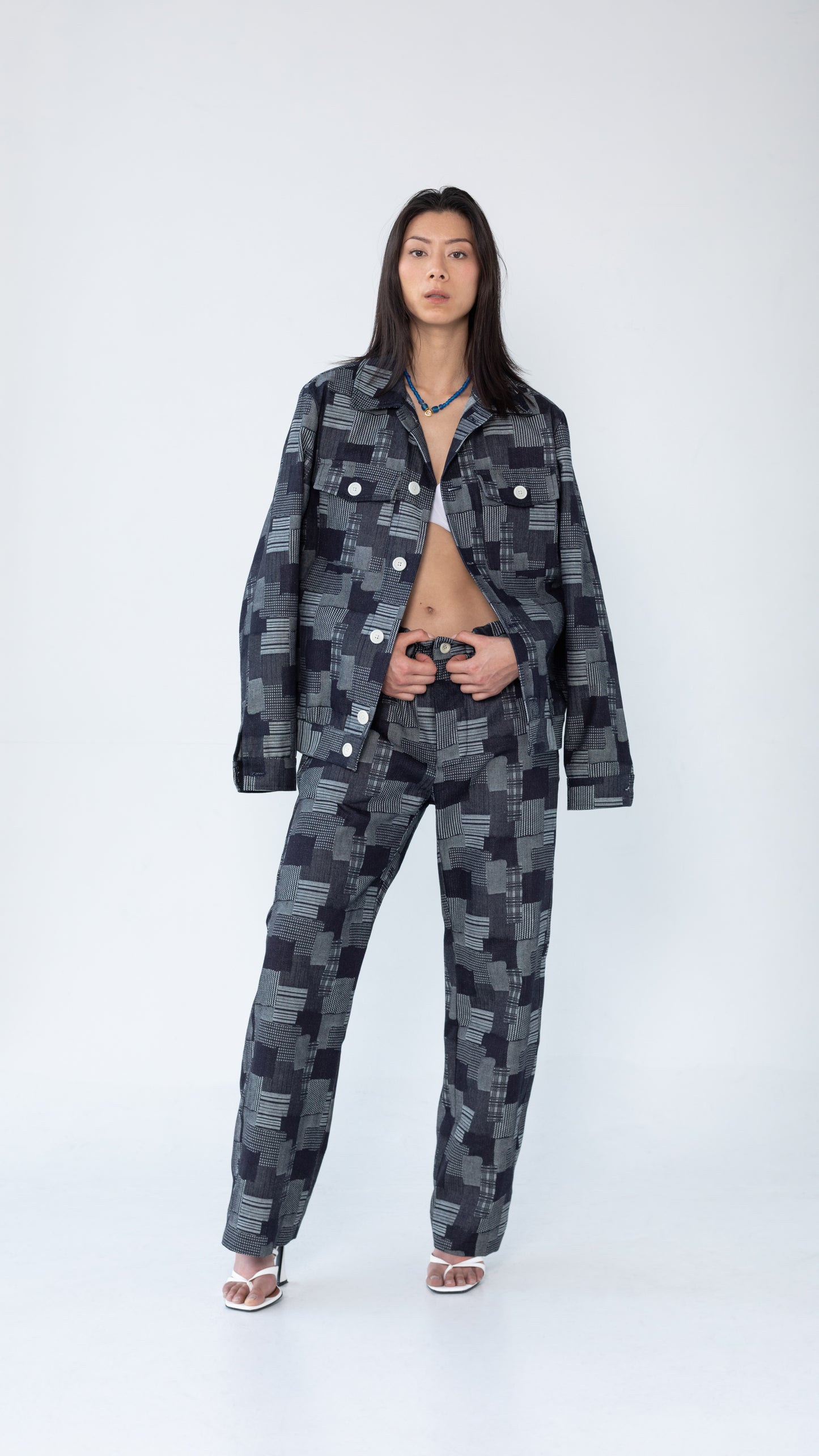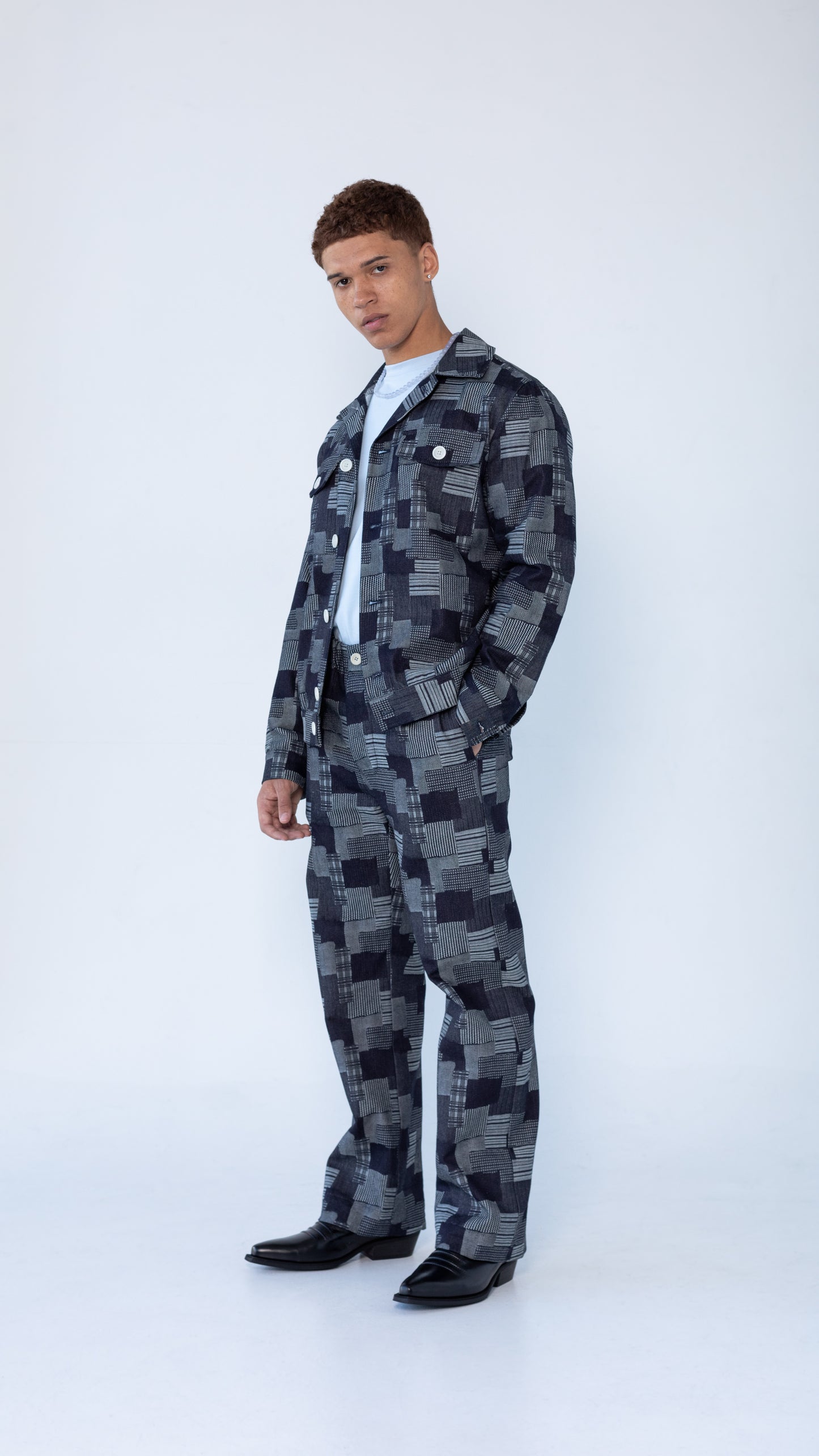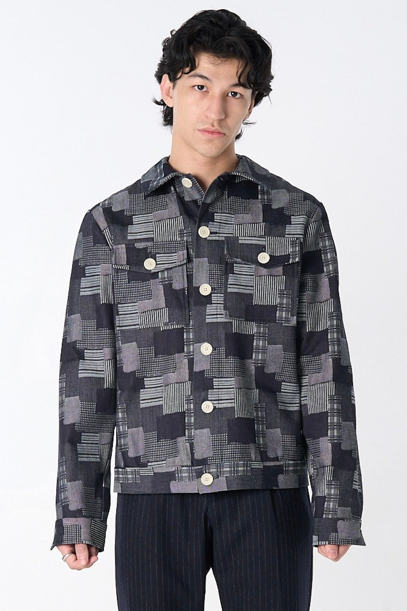 Graphia New York "Dean" Jacket in Dark Denim Patchwork Jacquard