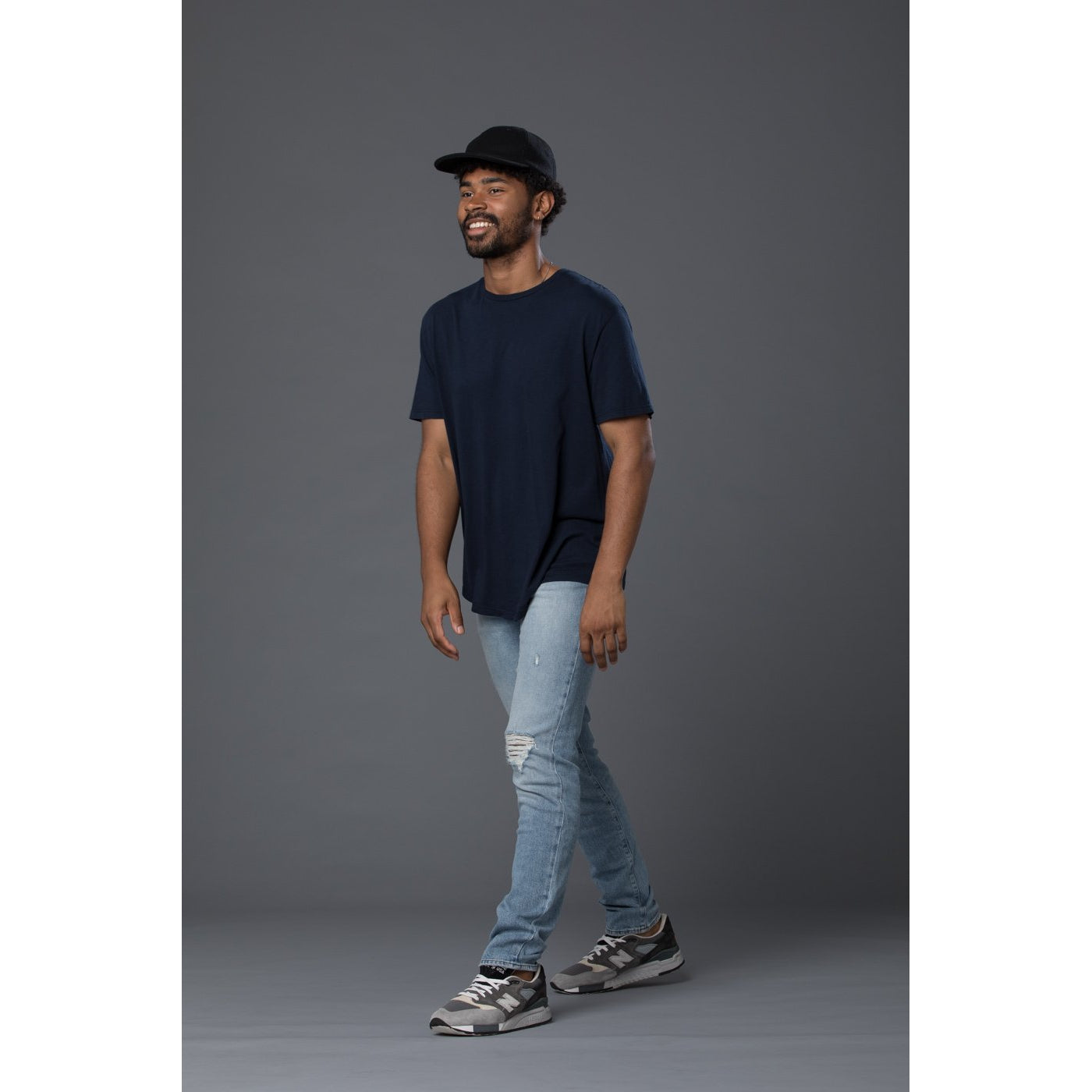GREI NY design with comfort and ease in mind, and their Pigment Crewneck Tee is a reflection of their aesthetic. The tees are hand dyed in Brooklyn, and are created in butter soft supima cotton and micro modal blend. The process provided a color of depth and soft hand due to the dye process. With a relaxed fit and rounded hem, the tee is easy to dress up or down. Worn with the AGOLDE Blade Jean and Indigo Cap.