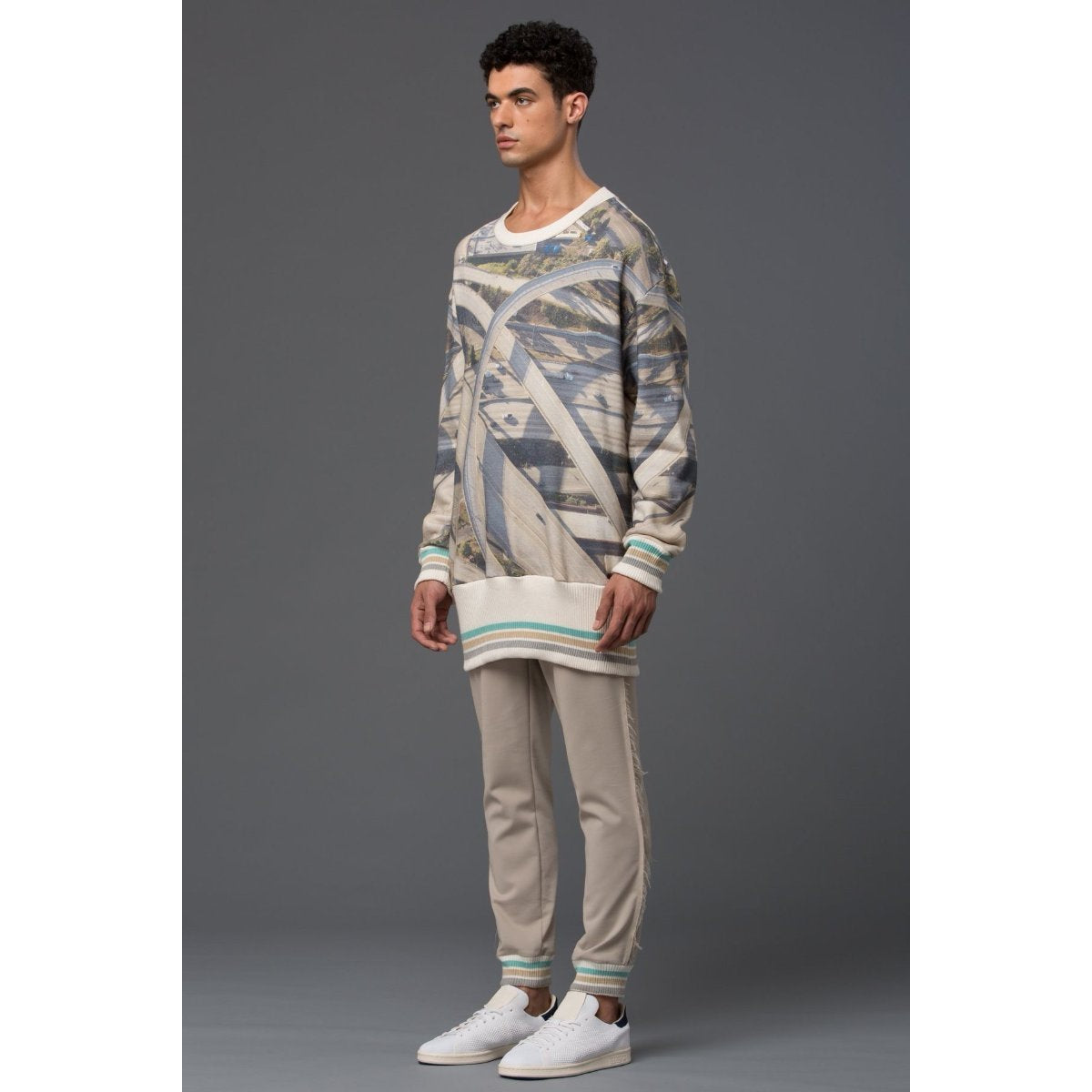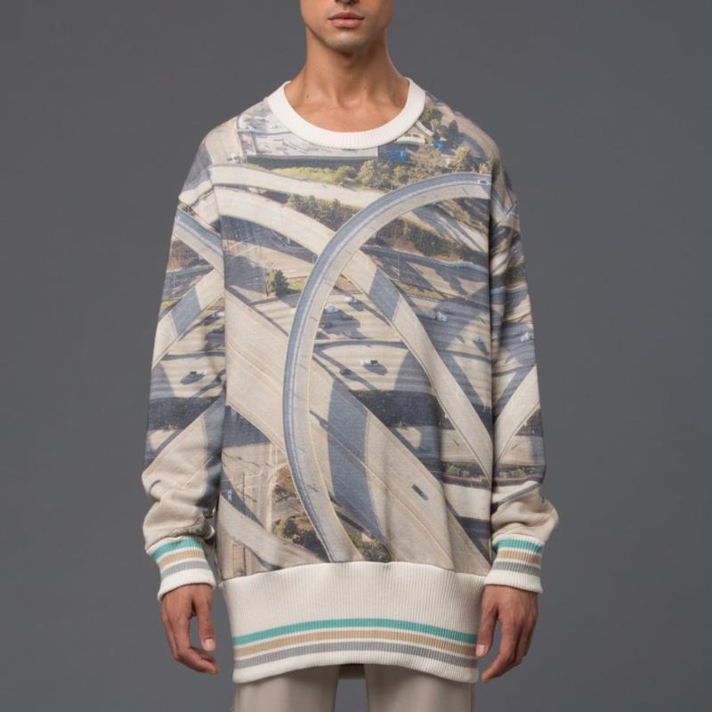 Highway Print Oversized Crew Sweatshirt