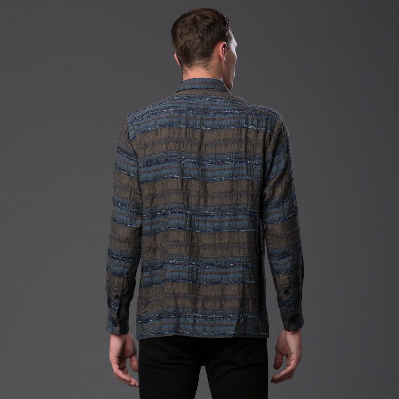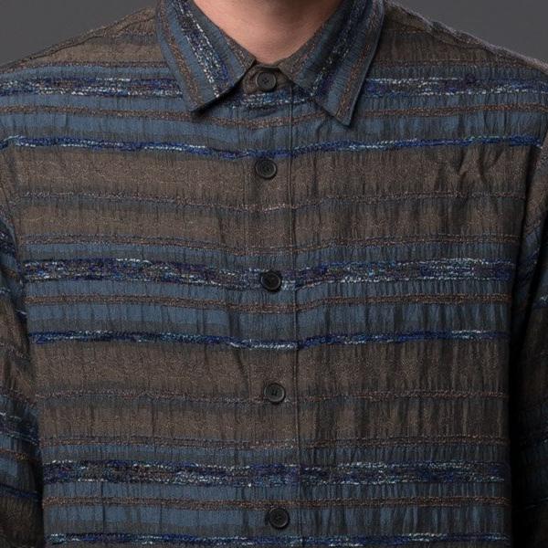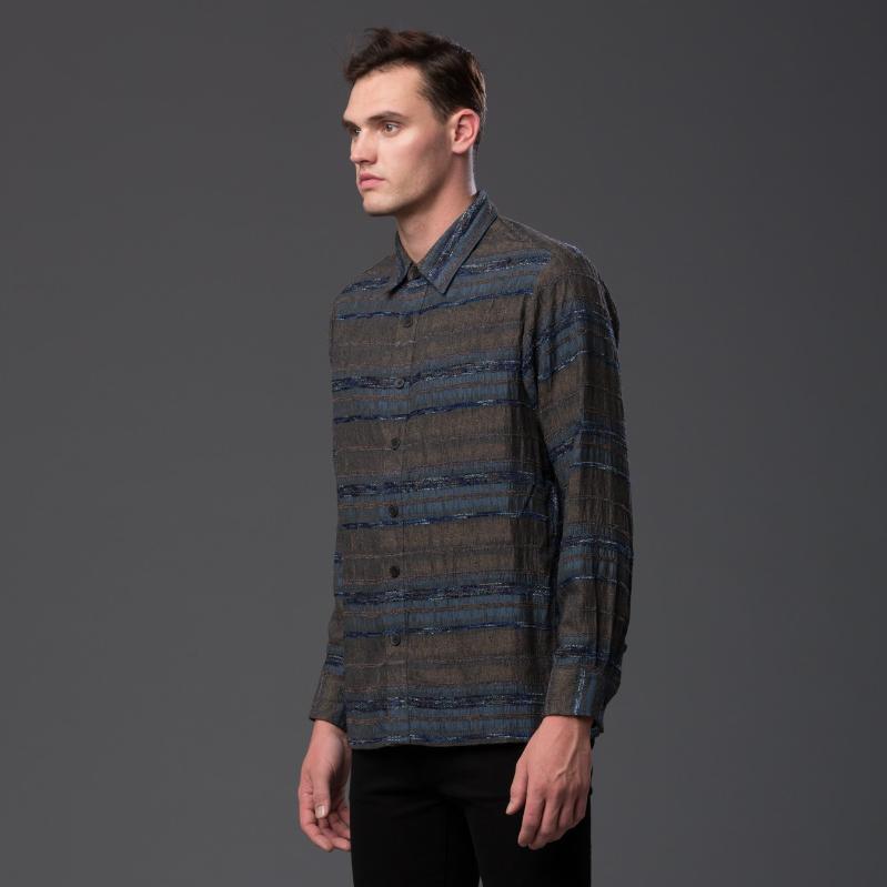 - 50% Viscose - 23% Acetate - 15% Virgin Wool - 12% Acrylic Jacquard Shirting