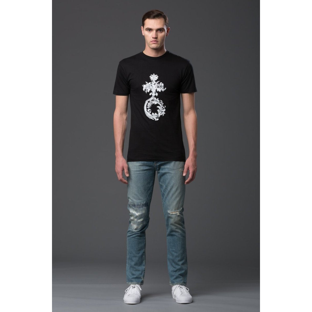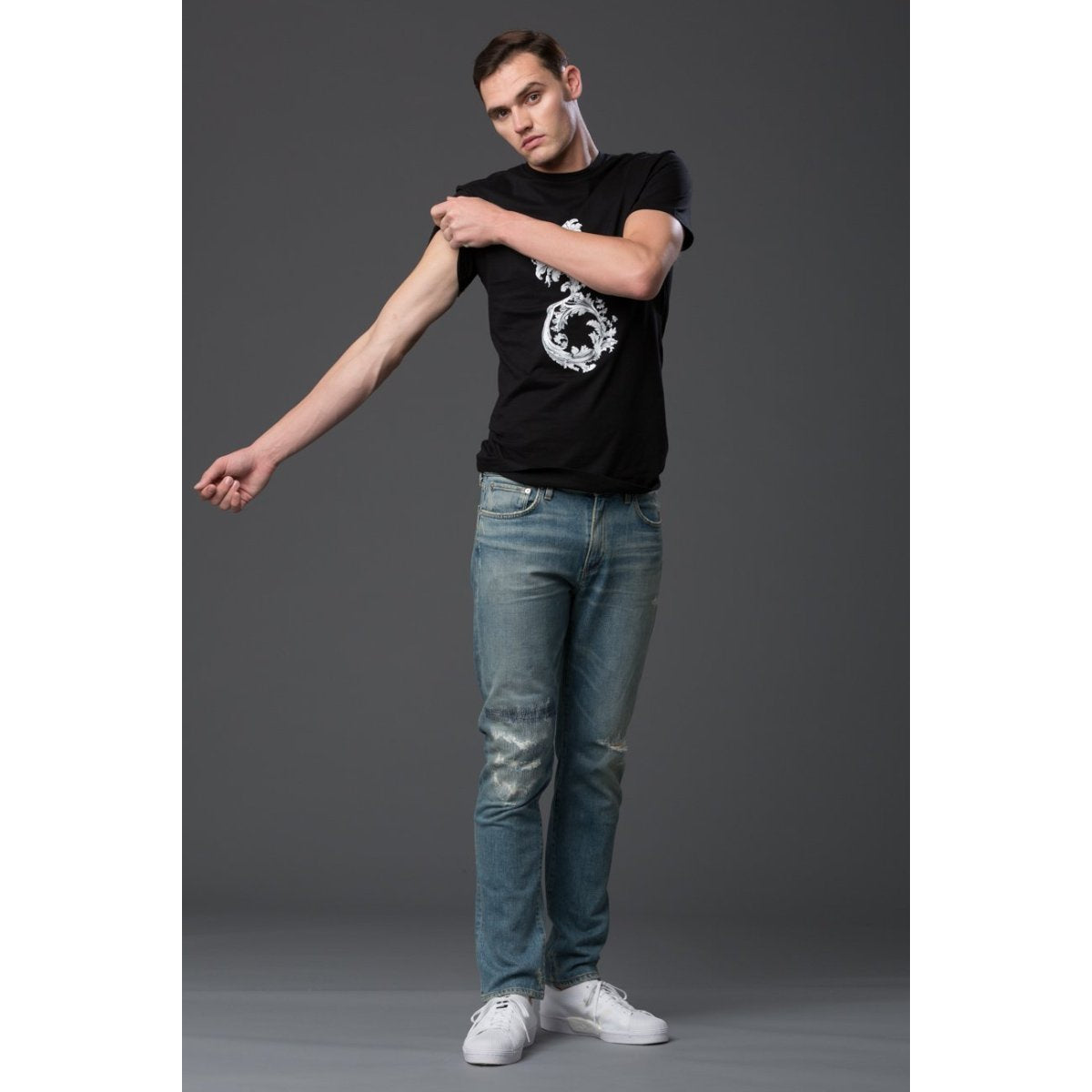 Thaddeus O'Neil latest collection mashes up elements of disco and punk subcultures from the 70's. This season the designer introduces cheeky graphic tees to his collection. The Team Utopia tee spins the brand logo in a new direction by incorporating Baroque font styling in a playful design. Worn with the AGOLDE Blade Jean.