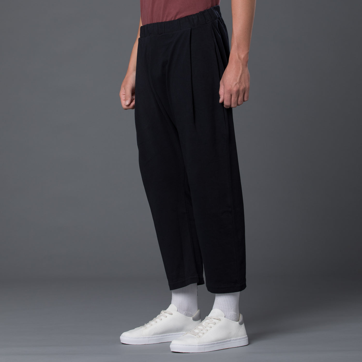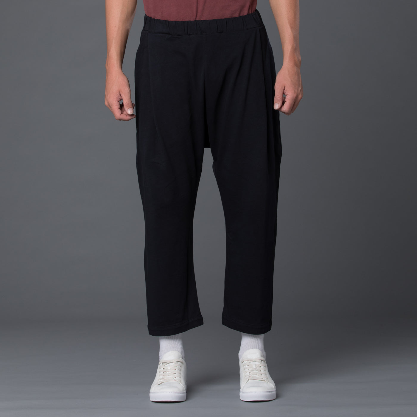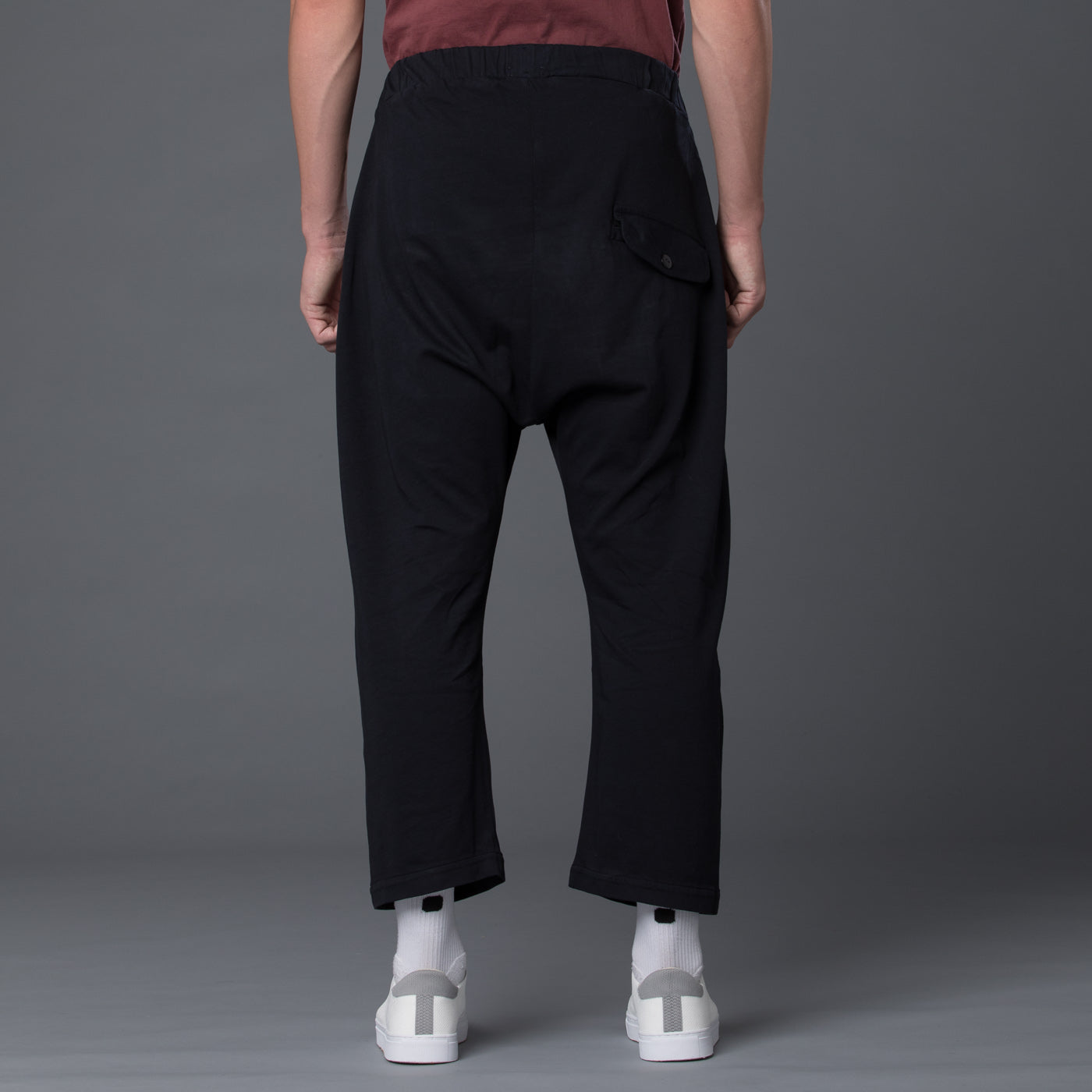 - Elasticated Drawstring Waist. Drawstring at Waist. Dropped Crotch Style. Pleated Front. Flap Back Pocket, Two Hip Pockets and Two Side Pockets.